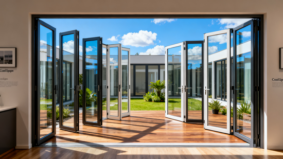 4 Panel, Folded Out, Right to Left, (1R3L), Folding Patio Door, Aluminum Folding Door (Black, 120"*96")
