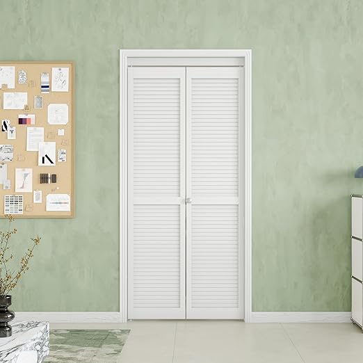 - PERFECT FEATURES:The product enhances the look of your closet, entryway, bedroom, or storage area with modern styling and is suitable for all decors.The unique louver design of these bi-fold doors ensures optimal air circulation throughout all areas.Meanwhile, the bi-fold door design greatly increases your space utilization.